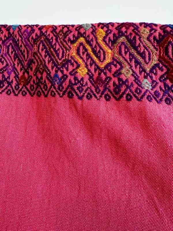 Perfect for spring and fall, transitional through summer. This open-sided coral color poncho is woven on a backstrap loom in the small village of Magdalena Aldama, Chiapas in the highlands above San Cristobal de las Casas by one our favorite cooperatives led by our friend Rosa. The fringes are hand-twisted. The design in the cloth is achieved using the supplementary weft technique and is naturally dyed wool. It is not embroidered. Machine wash gentle. Hang to dry. Measures 38” wide x 62” long including hand twisted fringes.